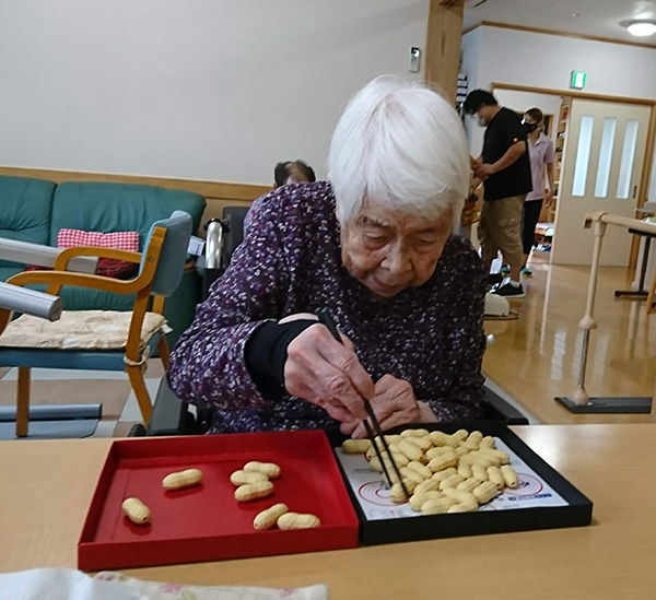 はるさんはスタッフさんにゲーム箸を工夫してもらい箸タイムを続けています。